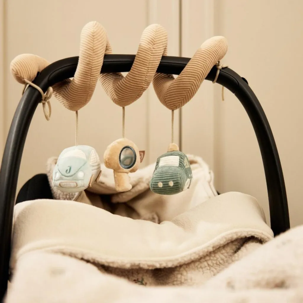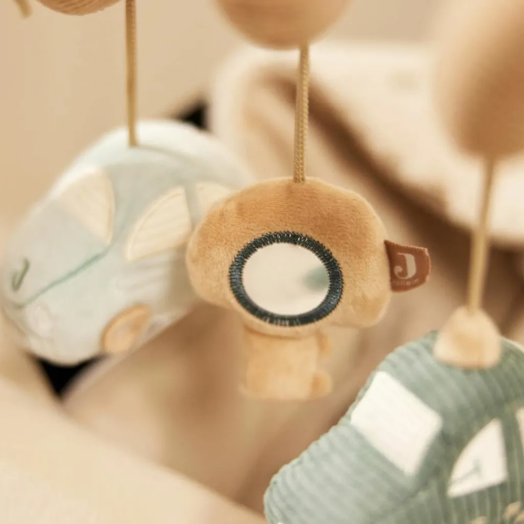 – Peut être fixé sur le cosy, la poussette, le parc, les barreaux du lit, etc.