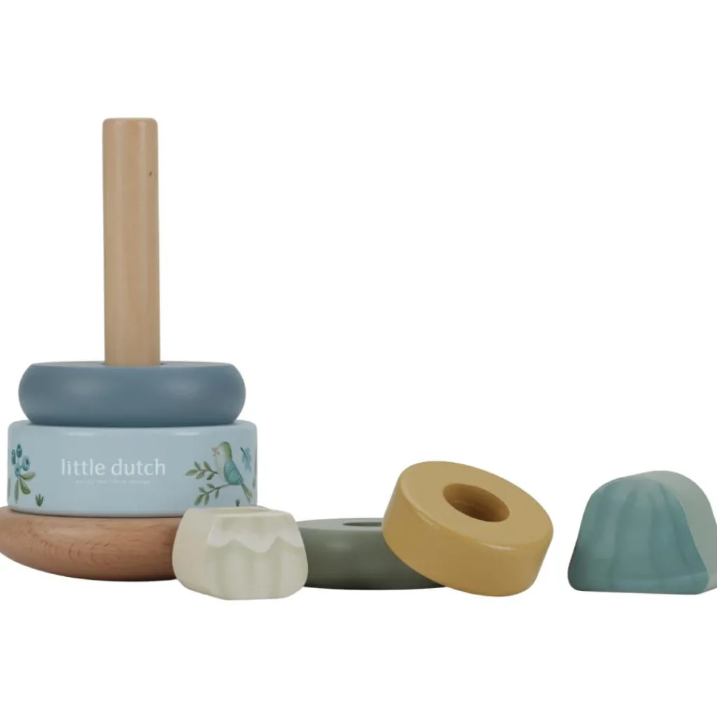 – Les enfants sont encouragés à placer les anneaux en bois dans le bon ordre et à les empiler sur la pyramide.