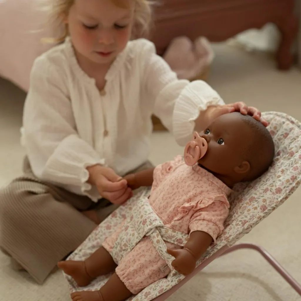 Ce transat pour poupée séduit par son design raffiné et son châssis en métal léger, facile à manipuler par les petites mains. Grâce à sa forme ergonomique, il apporte confort et stabilité aux poupées, rendant le jeu d’imitation encore plus authentique. Les enfants pourront bercer et apaiser leur petit compagnon, développant ainsi leur imagination, leur sens des responsabilités et leurs gestes attentionnés. Compact et peu encombrant, il s’intègre parfaitement dans tout espace de jeu.