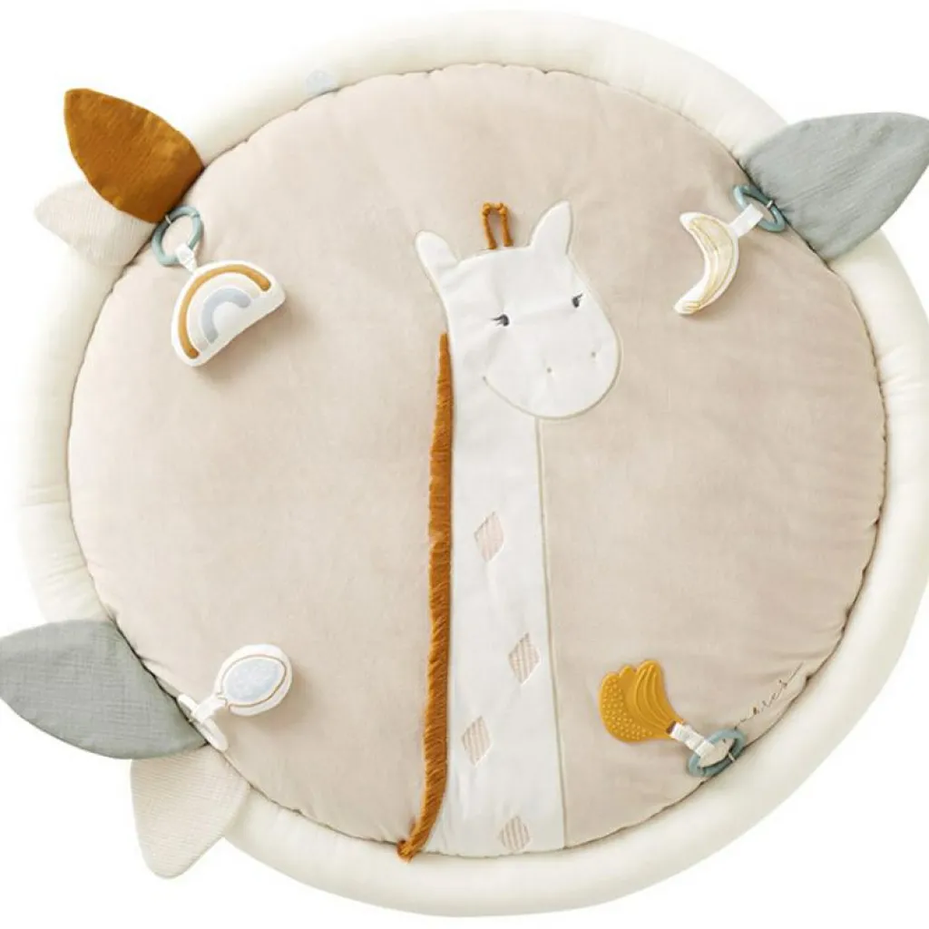 Le Tapis d’éveil avec arches Tiga la girafe de Noukie’s accompagne bébé dans ses premières découvertes et moments d’éveil tout en douceur. Un cadeau idéal pour un cocon ludique et réconfortant !