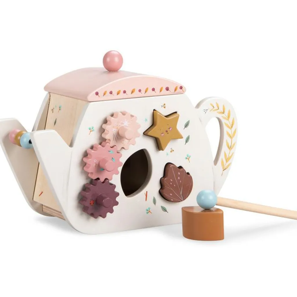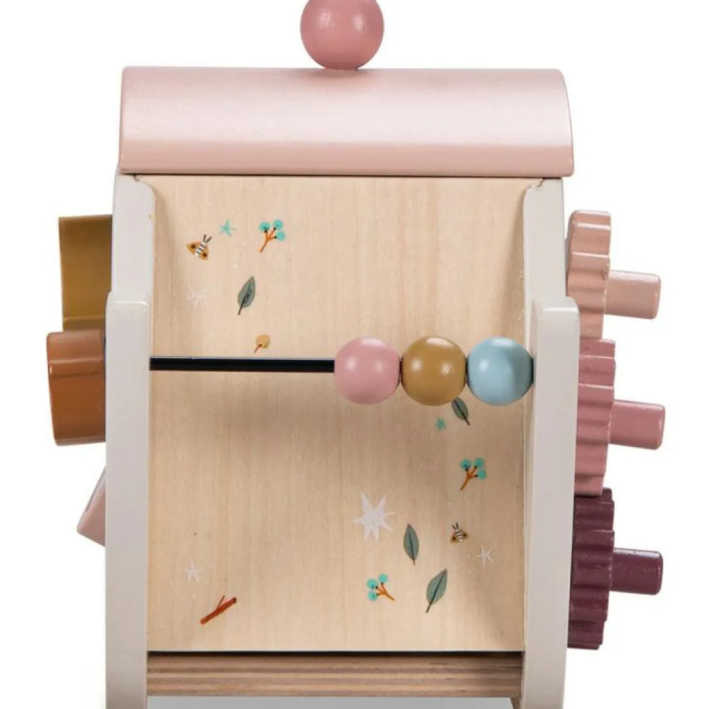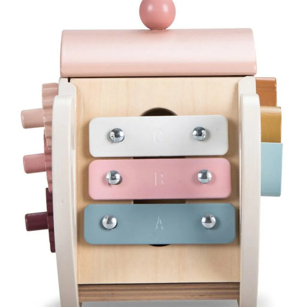 – Différentes activités, boulier, formes à encastrer, roues dentées à faire tourner, xylophone etc.