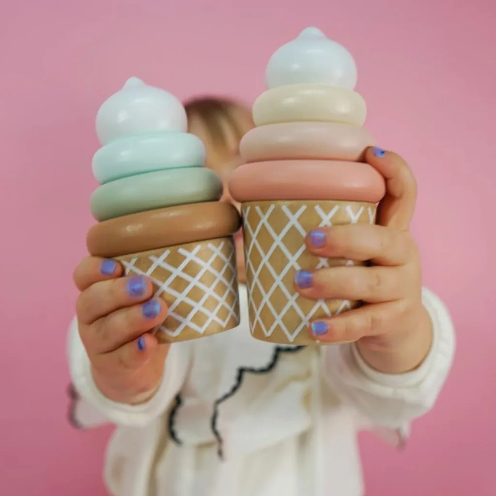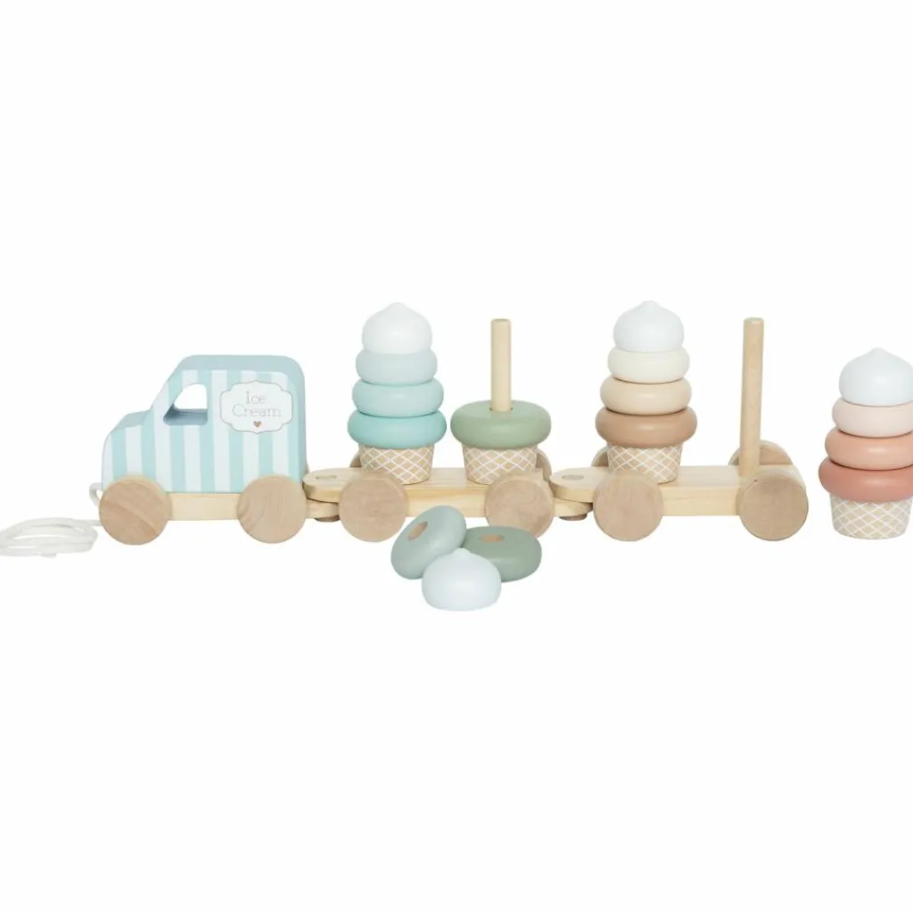 Un jouet original et plein de fantaisie qui combine jeu d’empilage et train à tirer. Les enfants s’amusent à construire de délicieuses glaces colorées, puis à les promener partout grâce au petit train équipé d’une cordelette. Entre apprentissage et amusement, ce train stimule la créativité, la coordination et la motricité fine.